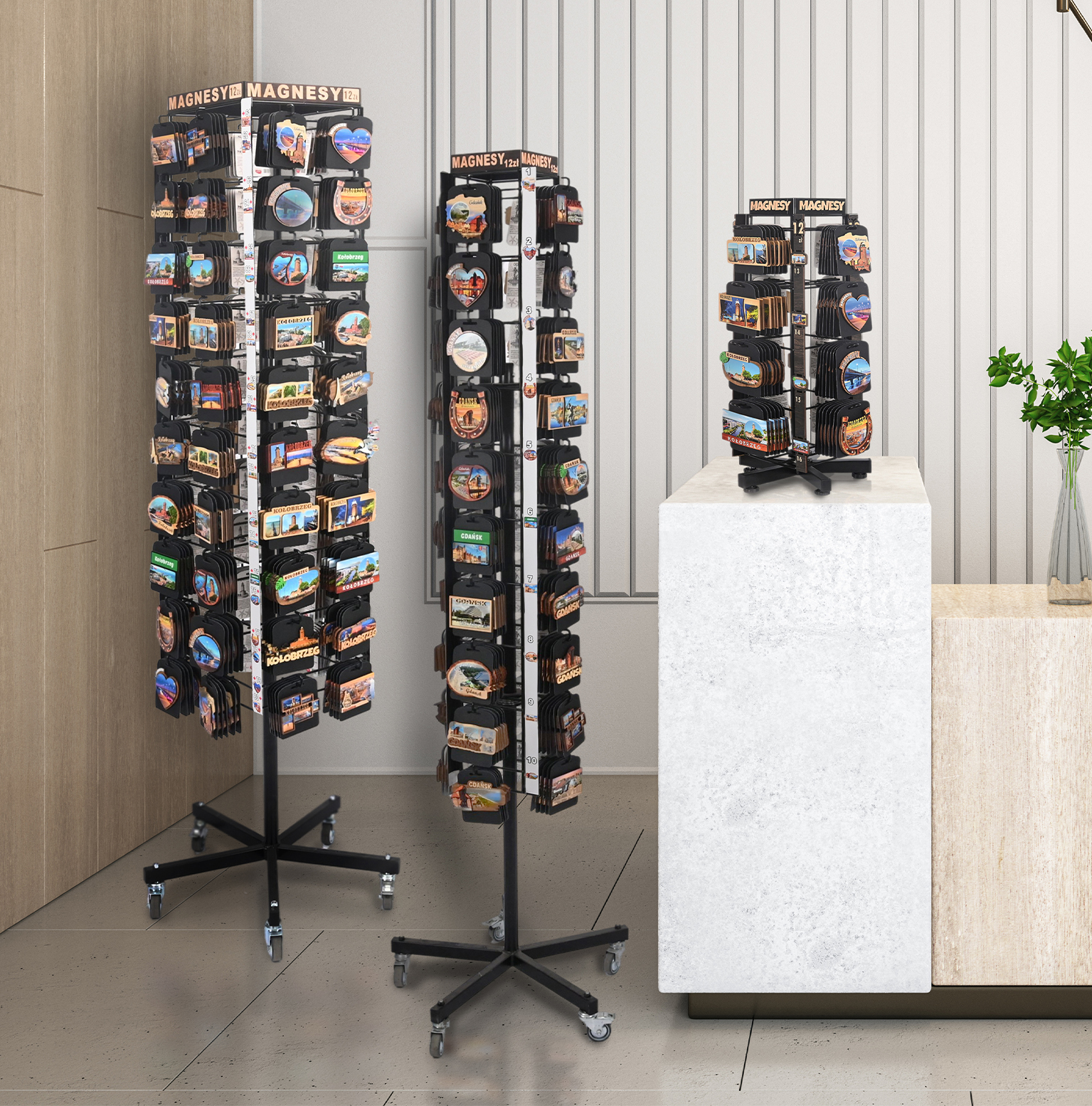 Para la serie hotelera hemos diseñado un nuevo expositor ligero y elegante que ocupa poco espacio y al mismo tiempo decora la recepción del hotel. Su diseño moderno, alta calidad y estilo refinado hacen que la exposición de imanes se convierta en una parte integral del interior del hotel.